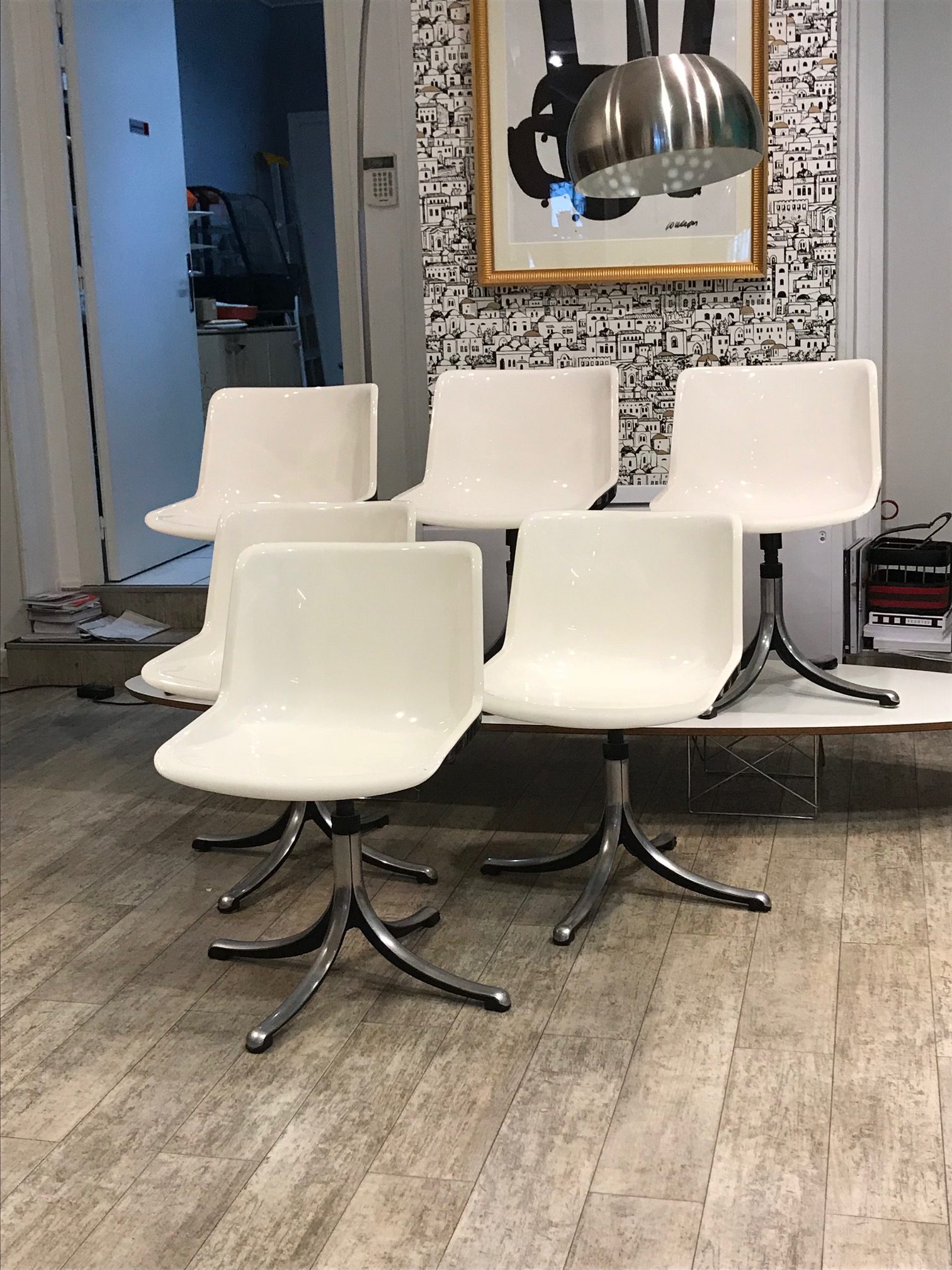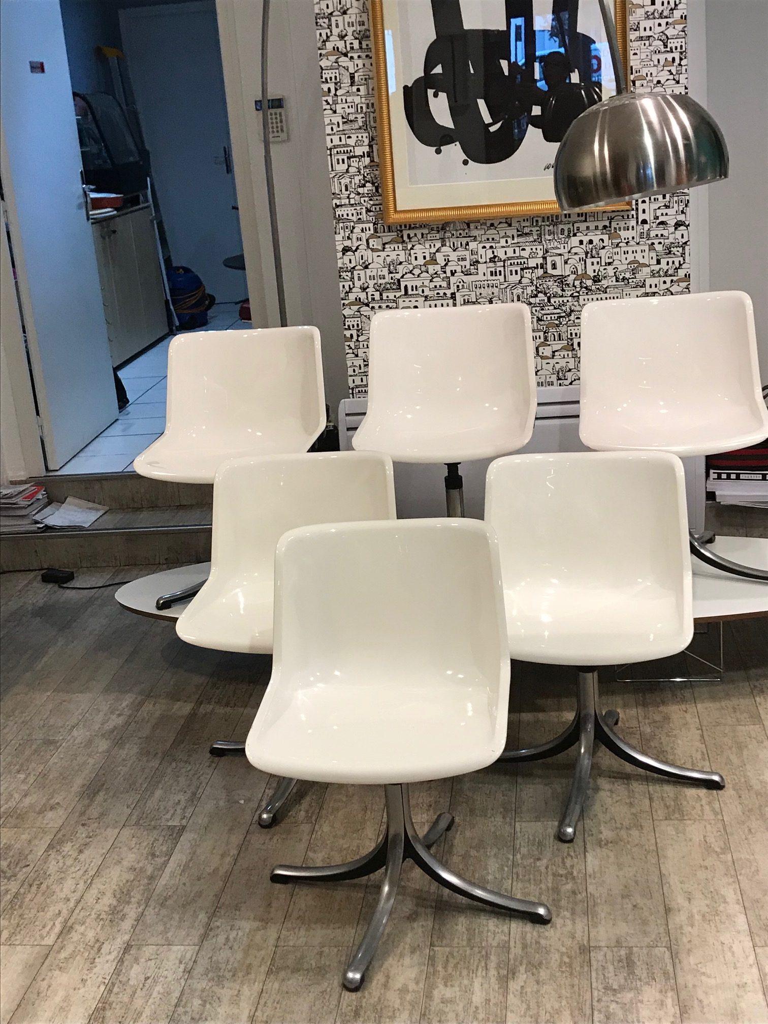 6 chaises blanches pivotantes pour Tecno