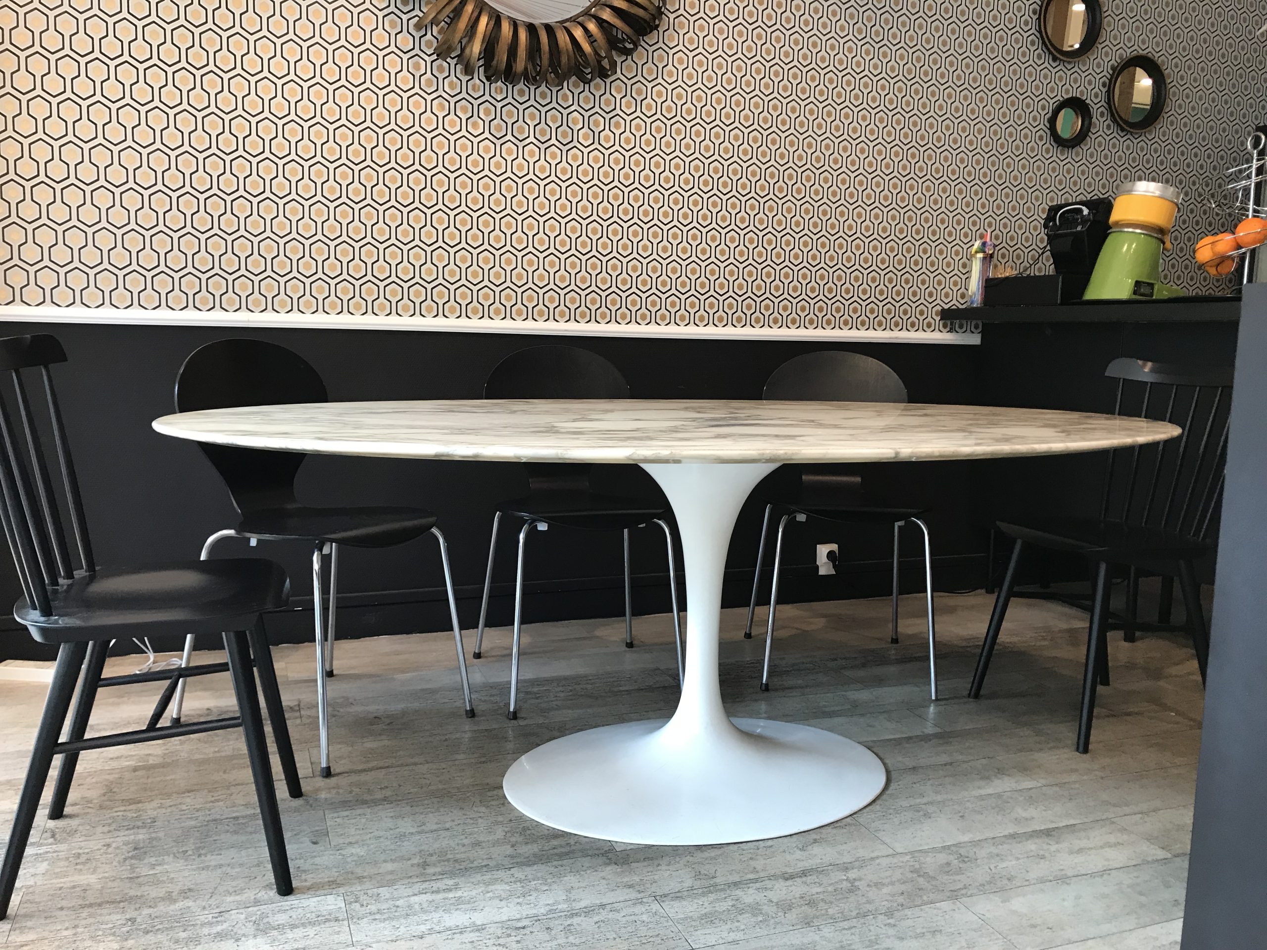 Superbe table Tulip Saarinen des années 70, d’un rare marbre de calacatta